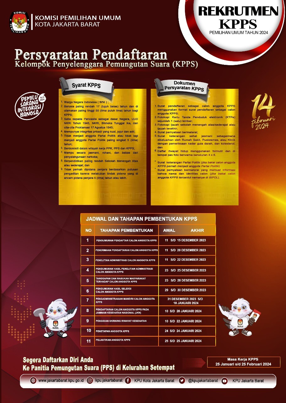 Pengumuman Jadwal KPPS dan Persyaratan Pendaftaran KPPS Pemilu 2024 Kota Jakarta Barat