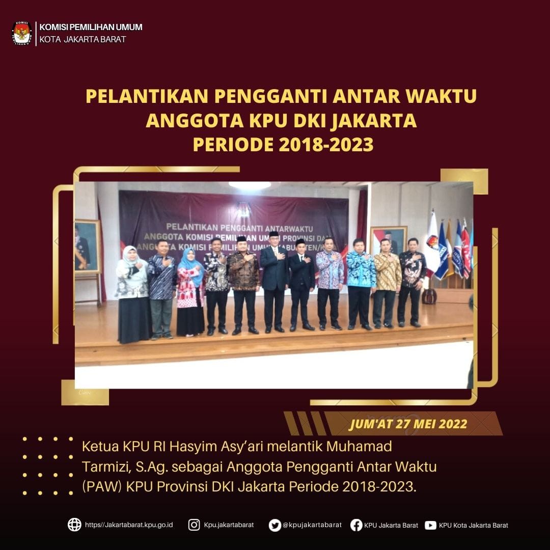 KPU Kota Jakarta Barat Mengucapkan Selamat dan Sukses atas dilantiknya Pejabat Pengawas pada Sekretariat KPU Kota Jakarta Barat pada 11 Maret 2022 Kepada :