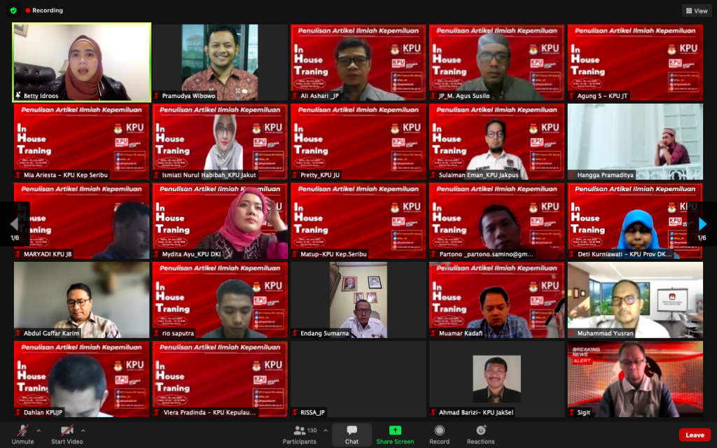 Jakarta Rabu 28 Juli 2021, KPU Provinsi DKI Jakarta menggelar acara in House Training Penulisan Artikel Ilmiah Kepemiluan yang di selenggarakan secara daring. Acara degelar melalui zoom meeting yang di ikuti oleh jajaran KPU Se DKI Jakarta baik Komisioner maupun sekretariat.