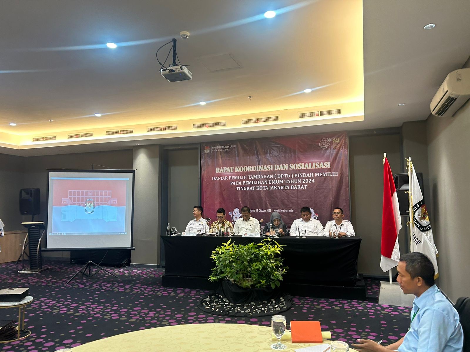 Komisi Pemilihan Umum (KPU) Kota Jakarta Barat menggelar Rapat Koordinasi dan Sosialisasi Daftar Pemilih Tambahan (DPTb) pindah memilih Pemilu tahun 2024 di Fave Hotel Kembangan Jakarta Barat pada Kamis, (19/10).